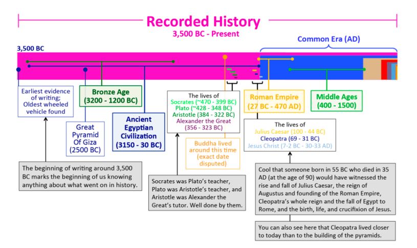 Although the human condition has transformed dramatically over the past 5,000 years, a time frame often cited as the beginning of recorded history (beginning with Sumerian Cuneiform scripts), the physical instrument has evolved much more gradually and over much vaster periods of time. Remarkably, some scholars and academics draw conclusions about the transmission of Astrology based on bits and pieces of manuscripts unearthed from ancient ruins, that mostly date back only to a brief cluster of time that surrounds the turn of the Common Era. However, we know that oral traditions from around the world predate and far exceed the scant evidence we have from recorded history. By comparison unrecorded oral traditions predate and exceed that of recorded history by a magnitude of perhaps 100 times or more. Oral traditions for example, might represent tens of thousands of years, where perhaps only a sliver of that expanse of time is captured in the shards and relics that have survived as artifacts. Stephen E. Nash a historian of science and an archaeologist at the Denver Museum of Nature & Science makes this point about the necessity of re-dating the Hebrew Bible after the discovery of the Dead Sea Scrolls. Seeing isn’t the same as believing when something appears other than it seems, and this in a word, is the trouble with the written record. Correcting one’s vision to embrace the circle in lieu of linearity, to broaden our perspective well beyond the puniness of our self-absorbed timeline can help. But let’s stay with the concept of the timeline for a minute. I defer to Tim Urban’s incredible blog WaitButWhy. He makes the point in a creative and entertaining way in his post called Putting Time in Perspective.