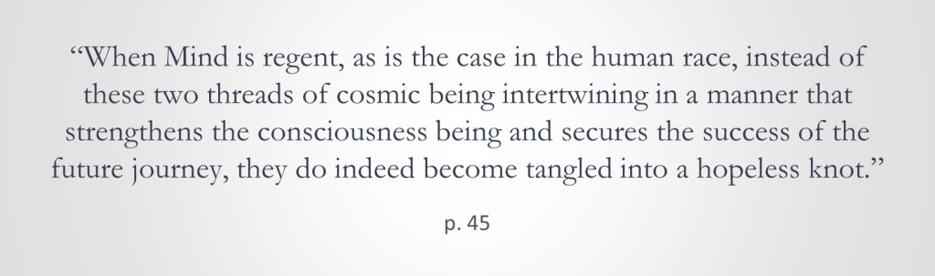 The key for properly comprehending the zodiacal wisdom in this regard divides the twelve-fold circle into four parts. The first quarter of the wheel corresponds with the Physical, initiated by Aries but associated with Earth. The next quarter aligns with the Emotional and is initiated by Cancer, whereas the third quarter corroborates the Mental and is initiated by Libra. In the first quarter, Gemini is the epitome of physical progress and therefore we find Mind in Matter. The second quarter epitomizes the Vital sheaths of the human body. The third quarter represents the Mental on its way to Supermind, exemplified by the sign Sagittarius when we reach that place on the wheel later in the story.