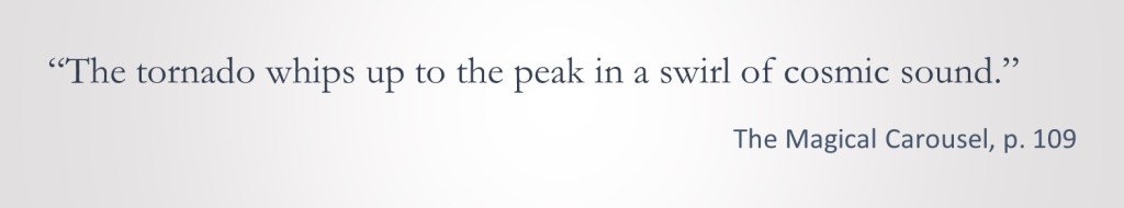 The rays of the midday sun envelope the peak of the mountain, but the children cannot locate the sun in the sky. The visibility created by the light reveals a land below in all directions, the view is unimaginably vivid and with such clarity it is difficult to describe without seeing it for yourself. From their elevated perch the majesty of it all is what strikes the observer first. As they immerse into the experience of taking it all in “a swell of iridescent, multicolored smoke appears on the far-off horizon. It moves in their direction, coming with great force, always closer toward the commanding peak…” The children want to run, but remain steadfast, supported by Omanisol’s imperturbable stance. But it’s “a tornado, whirling with mighty power. She gives a maternal feeling of protection, and a sort of mother-of -the-spirit, because it seems the state she is in could never be harmed by any outside force, being herself the essence of the rocky mountain.”