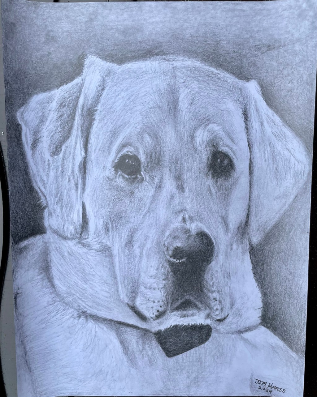 His dog, Emmet, had a sad concerned look for his master. Jimmy captured his essence, his “whatness” in the graphite drawing above. Did Emmet know Jimmy was suffering? Jimmy is an extraordinary artist but it’s a tough passion to make a go of, or should we say “Gogh?” Vincent Van Gogh himself hardly made a living without his brother’s support. Vincent also drew a dog and called it “Dog.”
